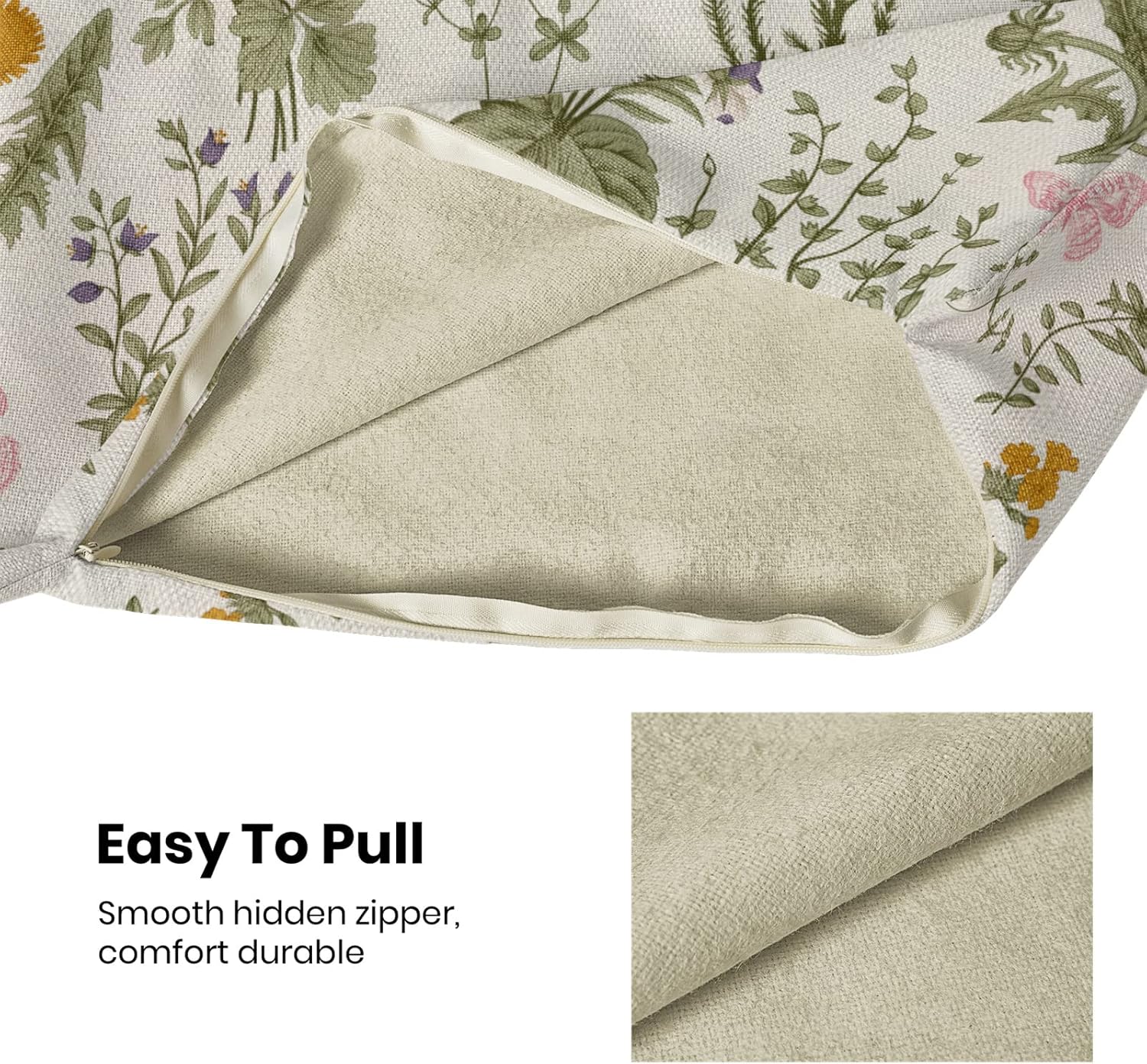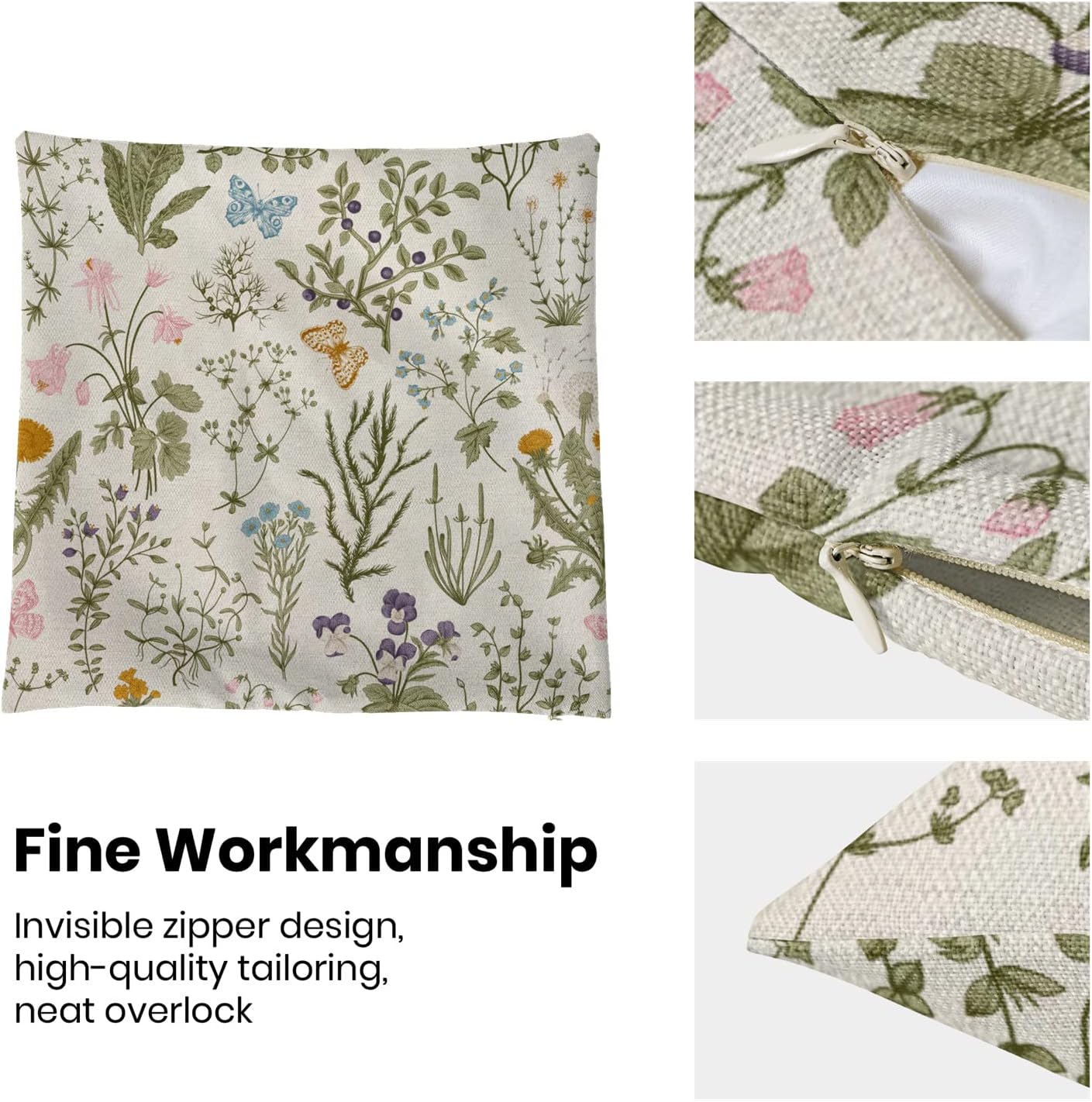 AEIOAE Spring Pillow Covers 18x18 Inch Set of 2,Sage Green Wild Flower Plant Throw Pillows Case,Seasonal Floral Outdoor Decorative Square Linen Farmhouse Decor Cushion Covers for Home Sofa Bed Couch
