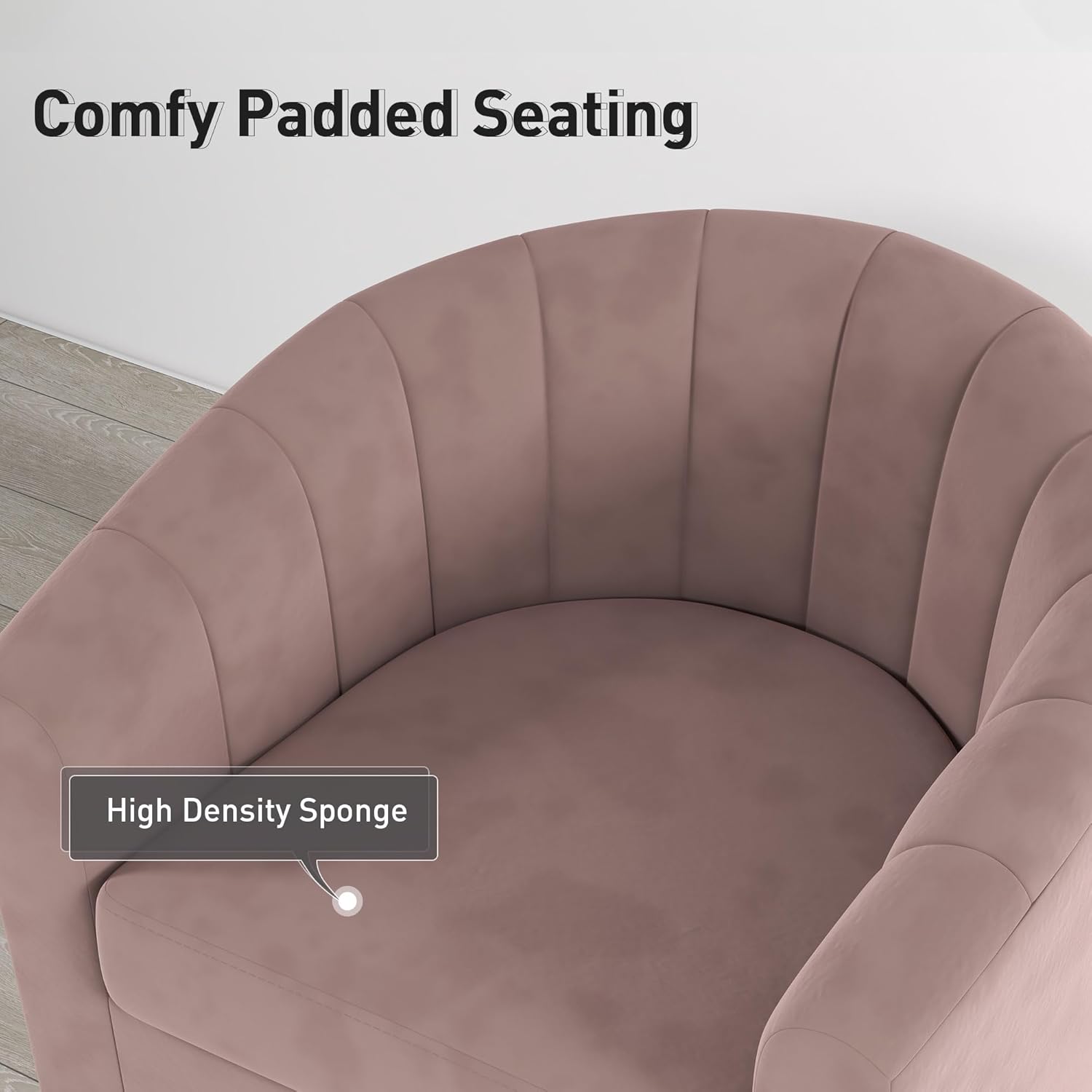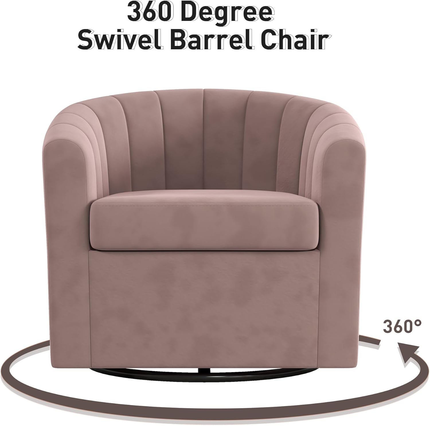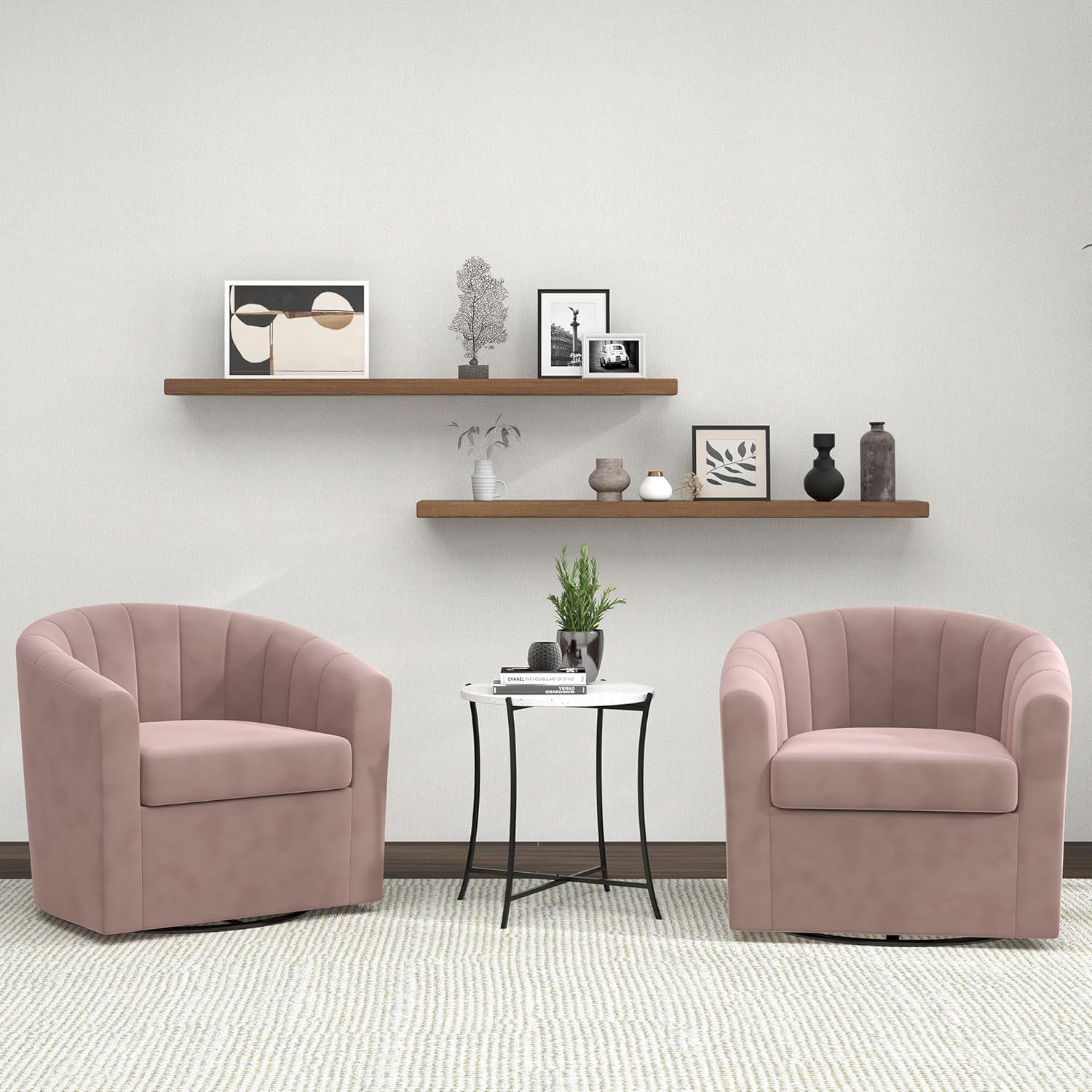 Bonzy Home Swivel Barrel Chair Set of 2, Modern Velvet Swivel Accent Chair with Channel Tufting, Soft Upholstered Armchair for Living Room Bedroom, Grey Pink