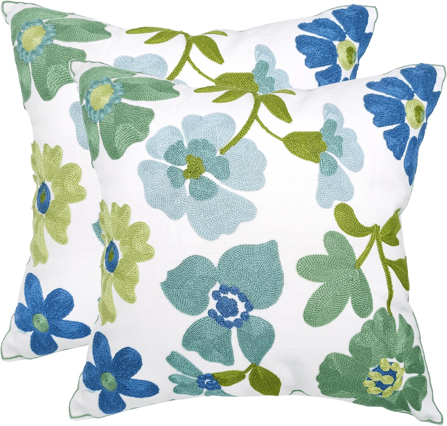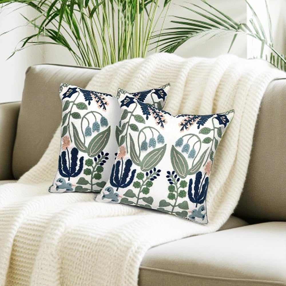 Embroidered Throw Pillow Covers, Pack of 2 Spring Flowers and Swallows Patterned Pillowcases for Couch Sofa Bedroom, Decorative Pillow Covers 18x18 inch(Swallows)