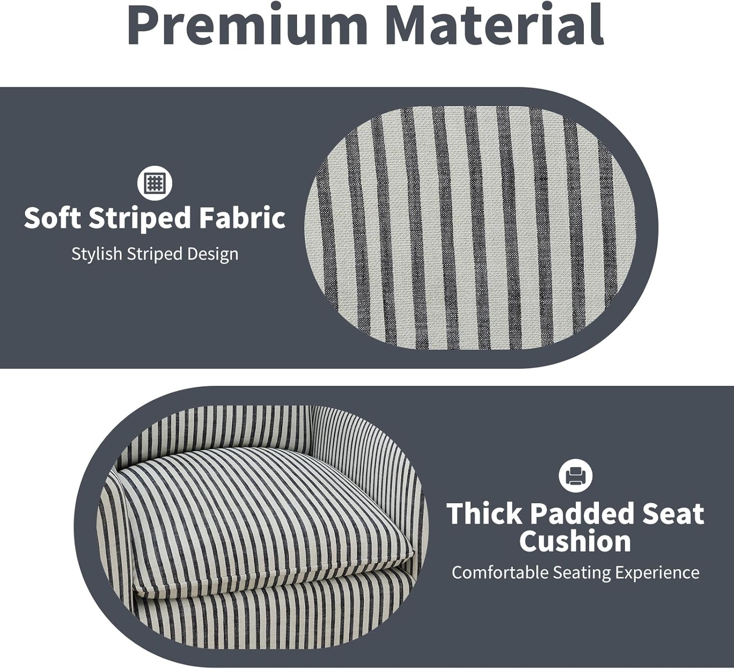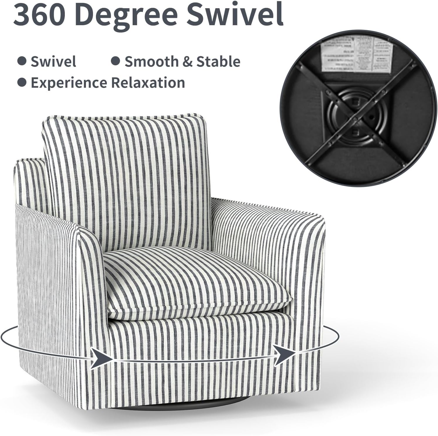 INZOY Swivel Accent Chair Set of 2, Upholstered Square Chair, Swivel Barrel Reading Chair with Thick Padded Backrest Cushion for Living Room Bedroom Small Space, Blue Stripe