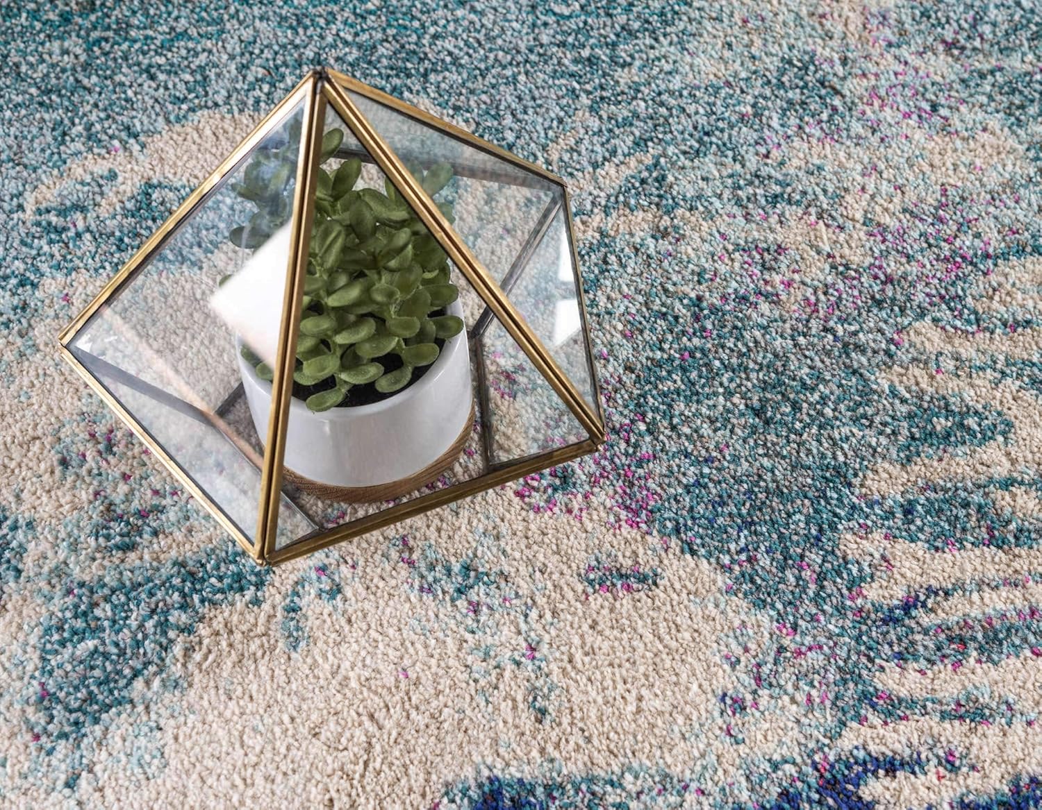 Unique Loom Positano Collection Coastal Modern Coral Lobster Shells Light Blue Area Rug (8' x 10')